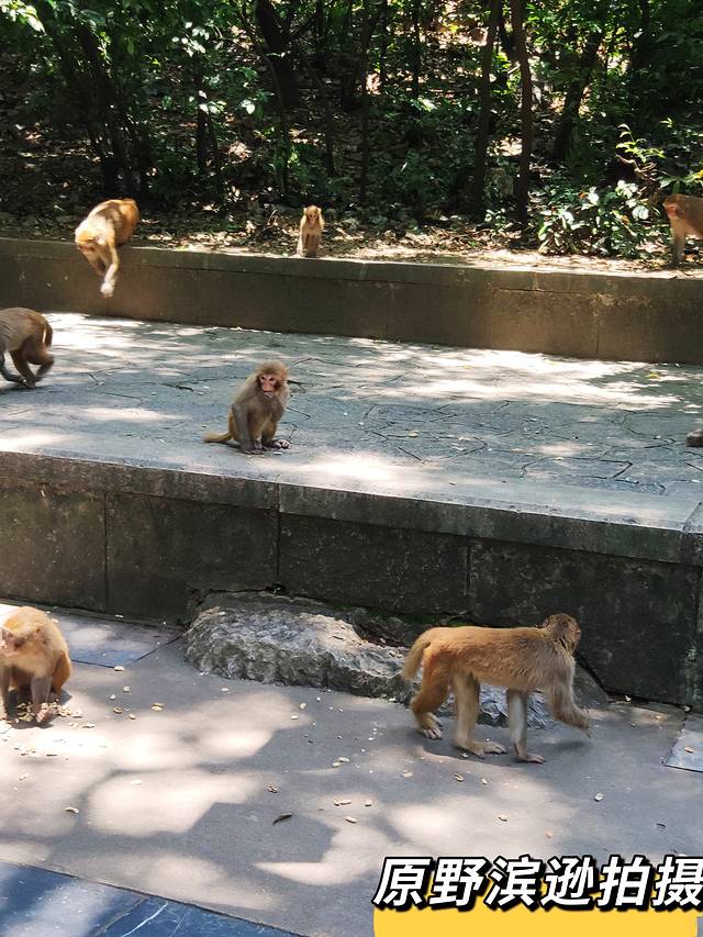 我们在草地上拍照留念,这里的绿色非常的多,对眼睛极好,在往前走,就进入猕猴活动区,这里的猕猴非常的多,胆子也很大,会从游客手里抢夺东西。而且感觉他们等级森严,那些瘦弱的猴儿往往都躲在树后面,那些吃的很胖的猴儿往往站在最前面,等待游客喂食。我特意往远处的林子里扔了一些馒头,那些瘦弱的猴子抱着战利品窜上了树梢。倘若是带小孩的游客要照顾小孩哦,猕猴还是比较危险的。