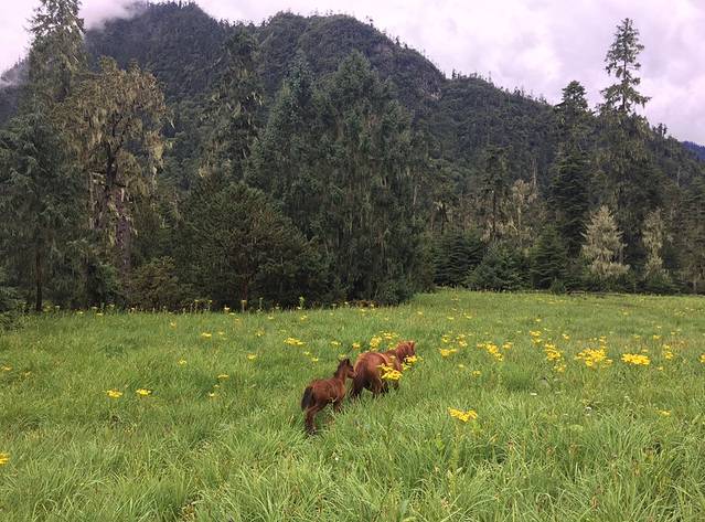 到达高处的时候有寨子,有生活在附近的藏民,还看到了野猪,不要随便给野猪吃的,有攻击性哦