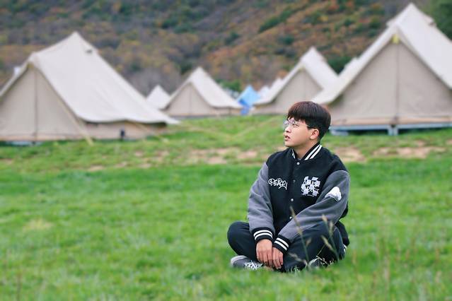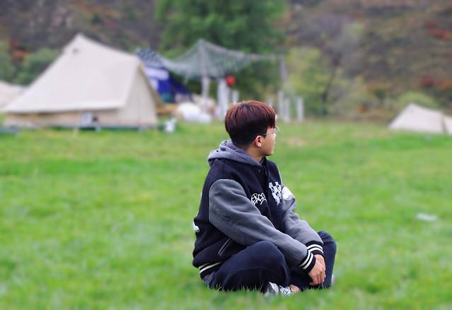 一起搭帐篷的小伙子看我带着相机,说他平时也不怎么拍照,能不能给他拍拍,我同意了就给了他拍一组文艺小清新风格照片。