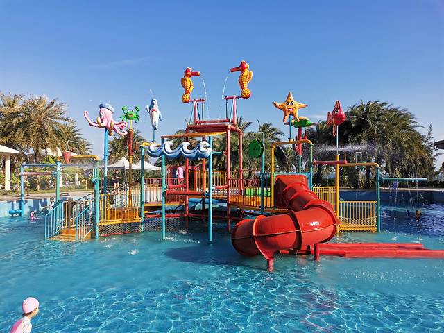 入住后原计划让小盆友午休,但是小盆友不配合,拉锯了近一小时,看到楼下儿童水上乐园已经有人“光顾”,于是也带小盆友去了玩。