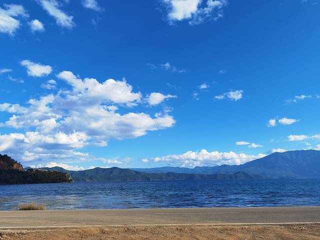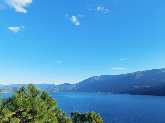 当你进入景区看到湖面和对面的大山时,那画面,简直太美了,天地之大,我自渺小!海天一色,无与伦比!