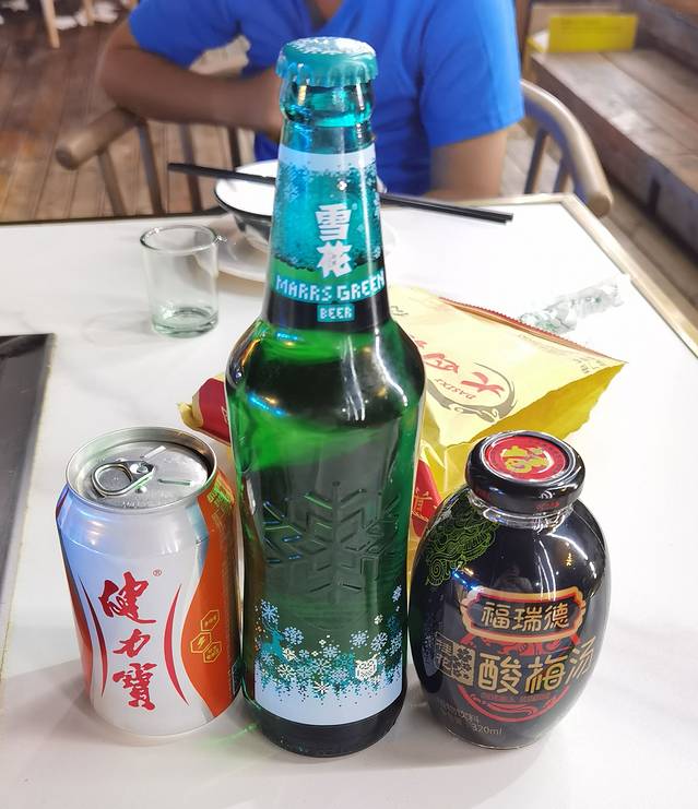 月光18℃大四喜烧烤,著名的酒水:健力宝,雪花,酸梅汤。