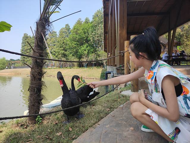遍地的黑天鹅是这里面最自由的,可以到处转,整个园子都可以看到他们的身影,而且不挑食,特别喜欢吃奶黄包