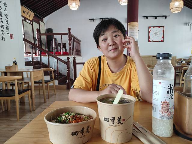 这个是在黄鹤楼脚下的四季梅,品尝人稀少,汤包也又涨了24块钱六个,我们买的是和汤包差不多的馄饨,18以及热干面。