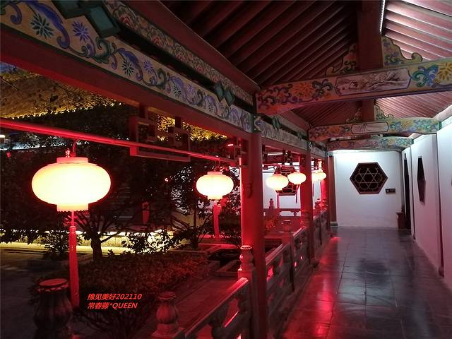 参观完大殿二殿,夜幕降临,沿着燃起的红灯笼走廊,是一个很小的后花园。再无可玩的地方。