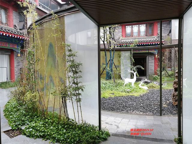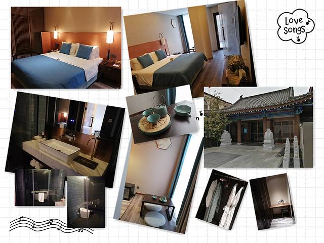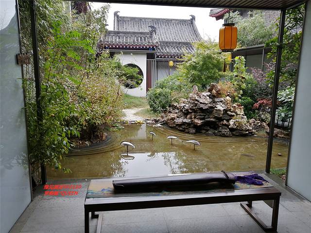 酒店中心区的花园,每个房间大宋礼服可免费穿,可以在花园里随处的应景拍照,瞧,山山水水还配备了古琴呢。