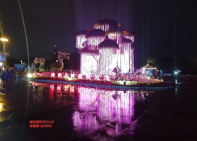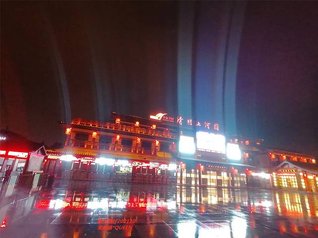 来开封的这二天,天气真是不给力,突然降温,时而下雨,幸好我们自驾有经验,衣服外套雨具装备齐全。就因晚餐吃有太饱,不敢回酒店,二个人手牵手漫步在小雨中,步行约有二十分钟到达清明上河园景区正门,原本也未计划游玩此景点,在网上浏览了众多评论,褒贬不一。大概了解到,清明上河园是个1:1复制清明上河图的公园,如果时间充裕,可以选择白天好好的游玩一天。