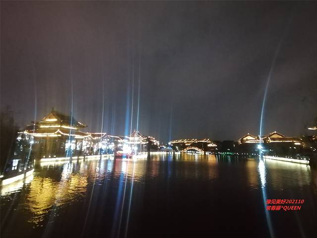 此时漫步在河道上,耳边听到的是穿越千年的宋朝唱曲,眼前看到的是灯火阑珊和花灯游船,我仿佛看到了千年前的汴梁盛景,听到了千年前的繁华之音。