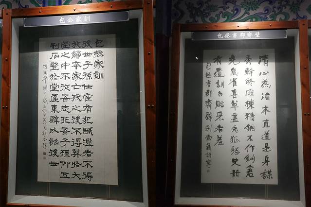二殿内有包公石刻像拓片一幅,线条清晰生动传神,逼真地再现了包公的风姿。