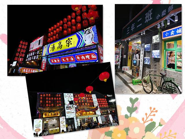 夜晚的丽景门很是热闹,灯火通明,里面熙熙攘攘各式各样洛阳特色小吃,特色小玩意,特产等琳琅满目,还有驰名中外的不翻汤坐落于此。很想尝尝不翻汤,实在是吃不下。。。吸引眼球的是三年二班的小卖部,名字也好可爱:三年级二班,哈哈。。。想必是店铺的主人当年就读过三二班,门口摆放的有年代感的旧自行车和绿书包,好亲切!仿佛让人觉得回到了那个年代。