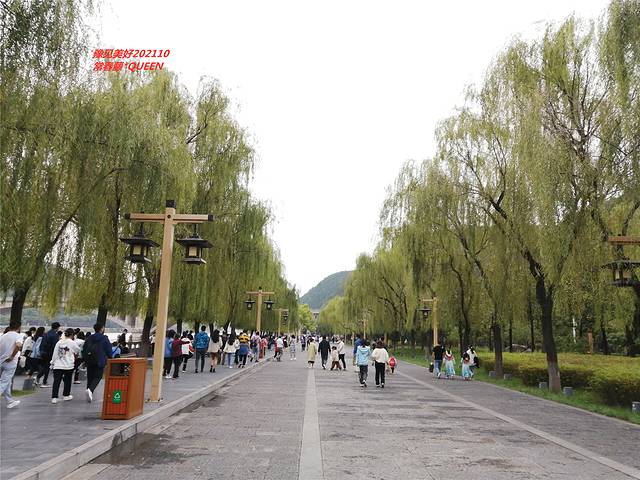 沿河道步行要一刻钟才能算是正式游览石窟。宽敞的人行大道,沿河边欣赏着风景的秀丽,亦不失假期好心情。