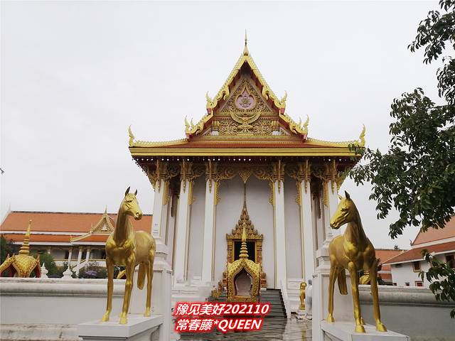 泰国佛殿正门前方两侧,各立有一匹高约2米的镏金马。