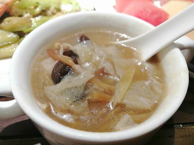 来河南怎么能不尝尝胡辣汤呢,连住二天包含早餐,就没有机会去外面尝尝街市胡同里的胡辣汤是什么味道,我有天中午打算去吃胡辣汤,结果店铺关门,告诉我只有早上才吃。酒店的胡辣汤我不知道是不是纯正的,但是我觉得挺好吃的,汤醇厚,没有想像中的辛辣胡椒味,清淡纯香的,很喜欢。