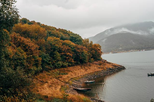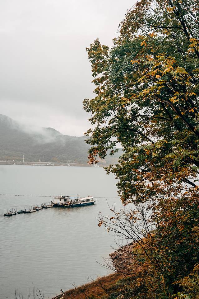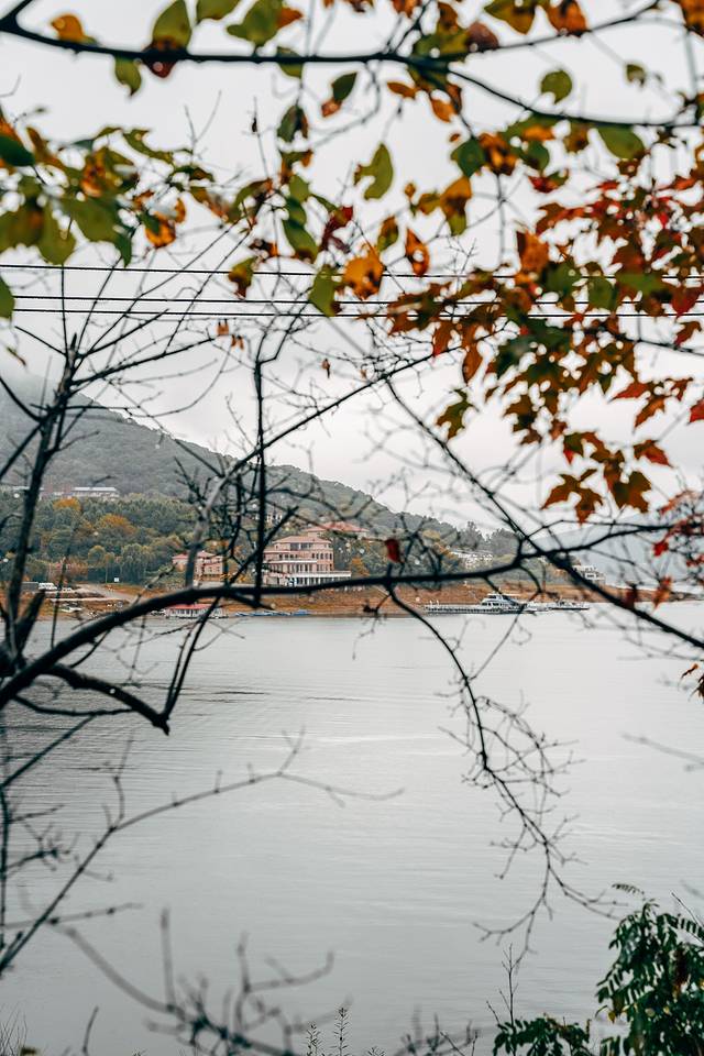 沿着松花湖驾驶汽车,小雨过后,一路上凉爽的清风,秀丽的湖边林色,清新的空气....万事万物,都像极了雕刻在脑海里最美好的画面,汽车的轮胎压过湿润的黄叶、含着水份的枯枝被一根根轻柔的折断,想了千千万万遍,仍是荡气回肠,回响不断。