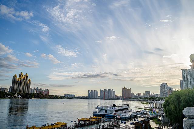 夕阳下的松花江边,你看见光辉照耀下散步的人群,也许你可以感觉到这就是吉林市的魅力。