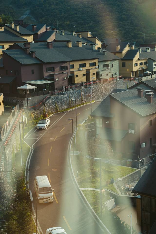 青至美墅在松花湖滑雪场别墅区,几栋高楼鳞次栉比的排列,放眼望去便是层峦叠嶂的山峰,适合家庭入住。