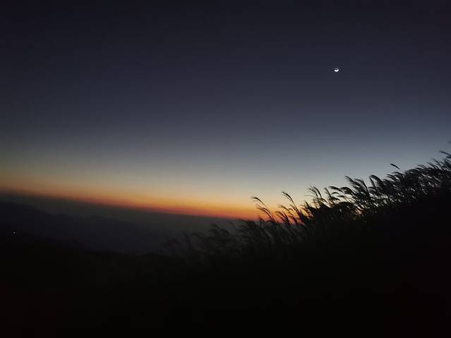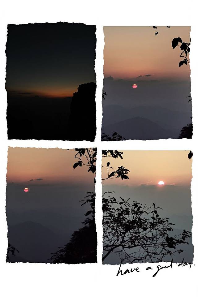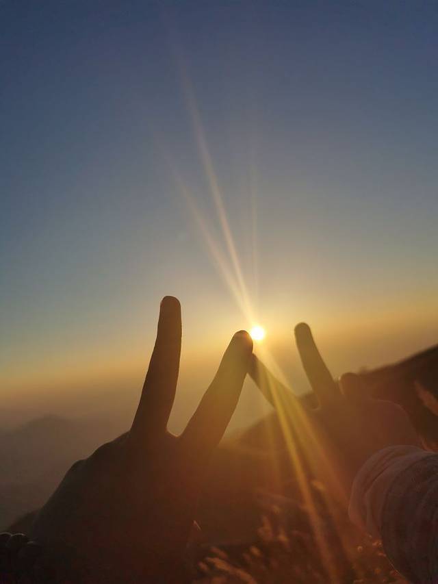 走到好汉坡第一段,(同志们,挑战自己就在好汉坡,好汉坡有两三段,能够爬到第二段就成功一半了,这个过程有两个小时。)回头发现日落也很美。太阳东升西落,每天都在重复,然而每天都是新的一天。有的时候,学会慢下来,也能发现不一样的风景。一颗咸蛋黄。