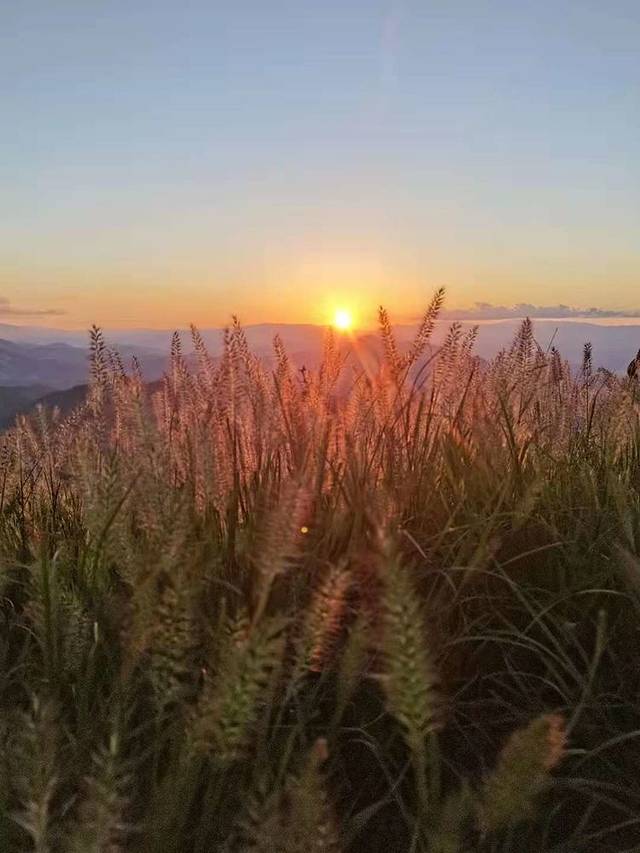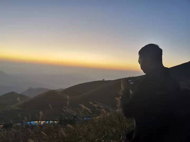 凌晨四点半,伴着星河,往最高处去。不要想着路有多远,爬上去有多艰难,只要想着,向前走,能见到最美的日出,就够了。天光渐亮,四眼望去随处是风景:破晓的晨光,远处逐渐清晰的朝霞,晨风中摇曳的蒲苇,甚至路边帐篷里的鼾声……即将见证一场日出,多么神圣的一刻。