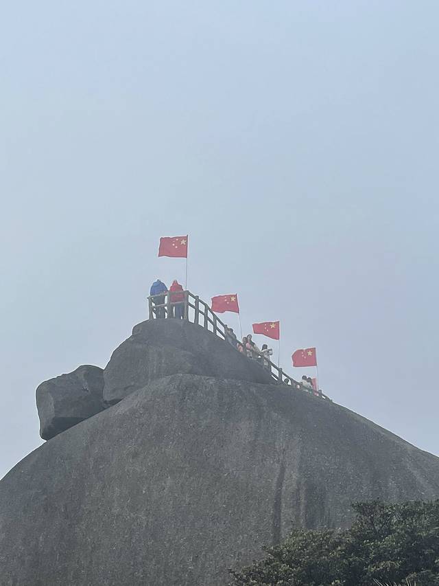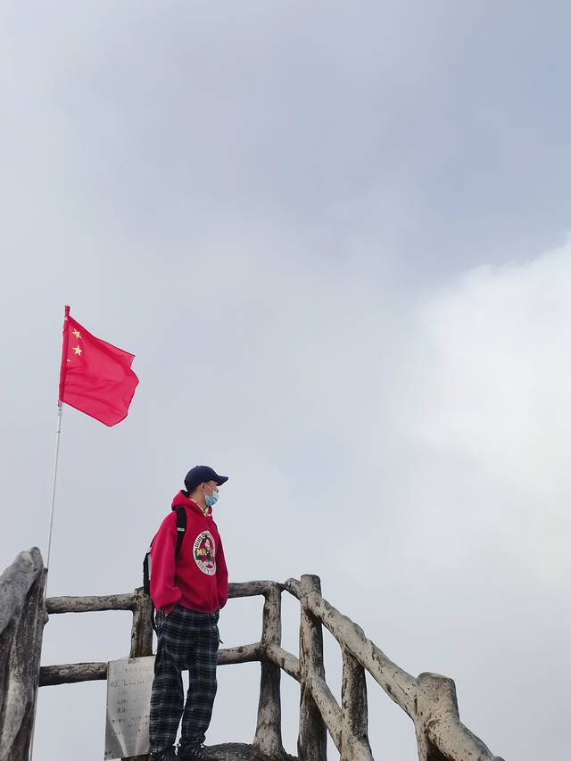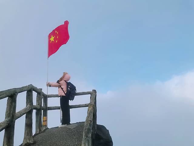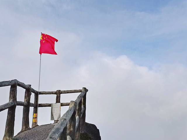 猫儿山顶,蹲了一早才等到的蓝天呀~鲜艳的五星红旗迎风飘扬,祖国母亲生日快乐呀(#^.^#)