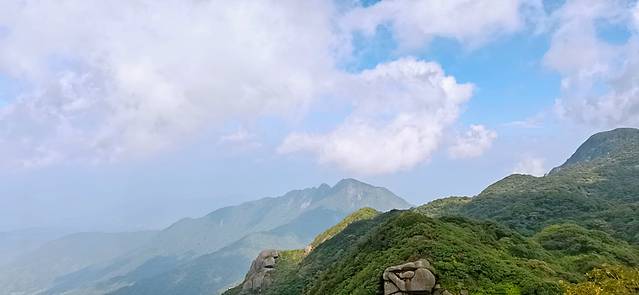 尽管雾很大,但是风也很大呀,在山顶,触手可及的云跑得很快,每一片蓝天的出现都让我们兴奋不已。