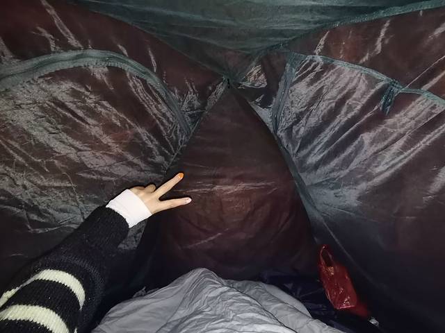 这还不是重点,真正的高潮来了,睡着睡着,下雨了,一开始只是小雨,吧嗒吧嗒打在帐篷上,好听好听,也很浪漫呀,哈哈哈······