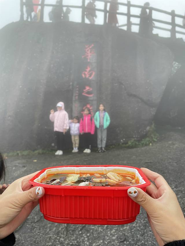 在华南之巅,哈哈哈,来一碗热呼呼的自热小火锅吧·····静待大雾散开,云海出啦!!!