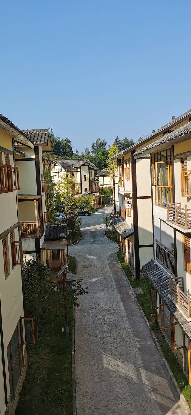 因为在微信里定了晚上的梦回巴国的表演,票价129,半价票,看着时间还早,就开车到桑树坪入住。本来想选在巴山露营基地里的玻璃木屋,但是600多的价格还是放弃了,最后选择了云漫巴山酒店,300多的标间,别墅群,比较安静,那里有很多酒店,但是那些的缺点是下面可能有烧烤和餐馆,比较吵,所以这个酒店比较安静。而且它的酒店大堂门口就是篝火晚会,右边是夜游巴山,前面是亲子乐园。