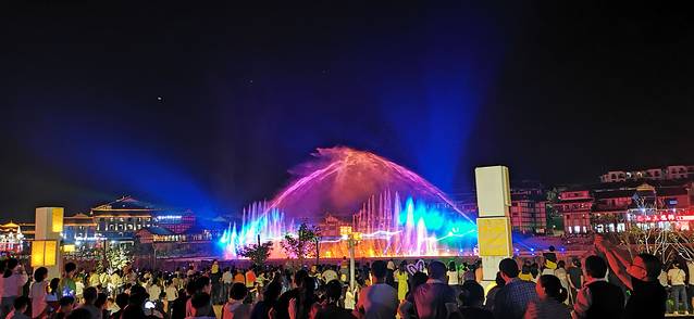 表演看完出来刚好可以看水舞秀,还可以在渡口区散散步。