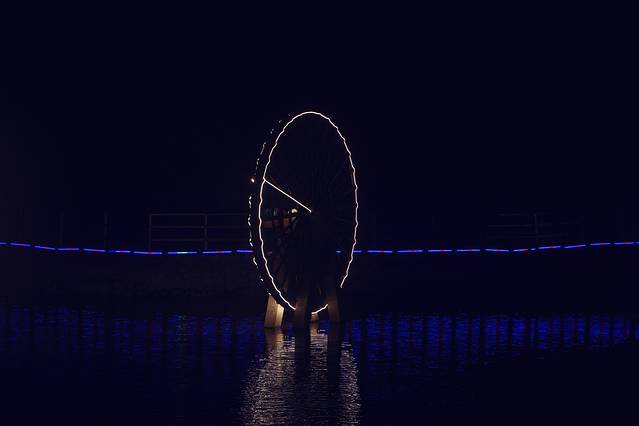 夜幕降临,沿着湖边漫步,灯火密布,景色怡人。