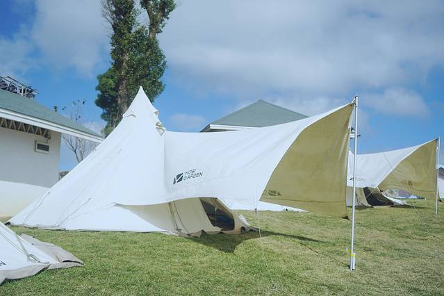 露营地在铜鼓峰脚下,海拔1050米,有一大草坪,约有千亩,地势平坦,花草丰茂。大草坪中间,泉水涓涓汇入,形成天然湖泊。湖水清冽透明,波光潋滟,观之神清气爽。