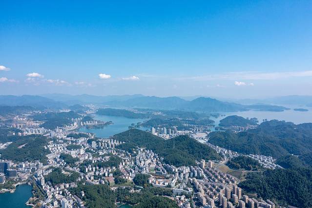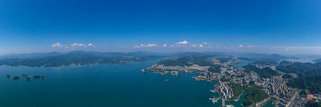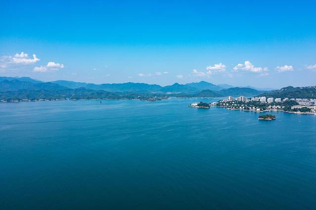 在略显骄“燥”的阳光下,湖面碧波万顷,一阵带着暖意的秋风吹过,激起层层涟漪。把无人机放飞,在天际遨游,看到的是不一样的视角,是无与伦比的美丽与震撼。俯瞰千岛湖全貌,整个小镇依山傍水,风景绝佳气候宜人,真的特别适合逃离城市感受大自然的慢节奏。