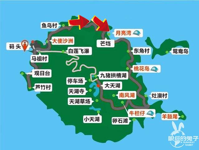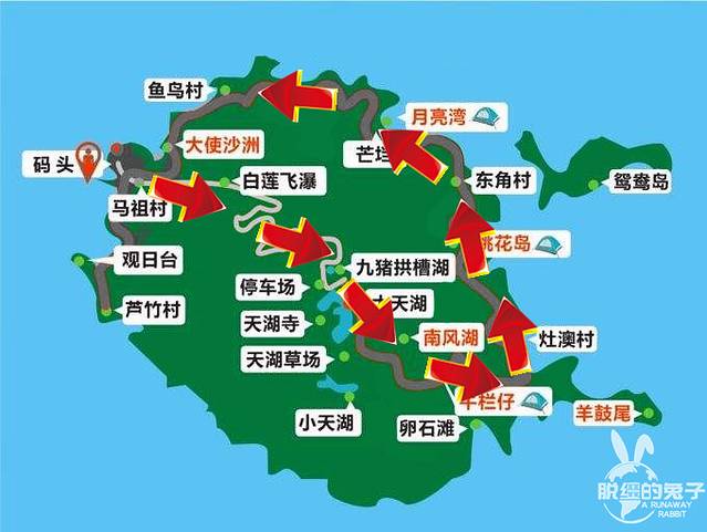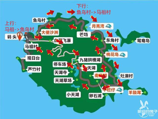 桃花岛:交通不便,没有车站,但可以让景交车中途停。在山腰,需要爬上去很多。