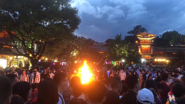 4日下午游丽江古城,因表弟身体不适,我们5人就在民宿周围逛逛古城,人流量很大,晚上还有篝火表演,不少游客加入跳舞,很热闹。