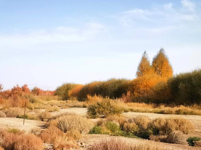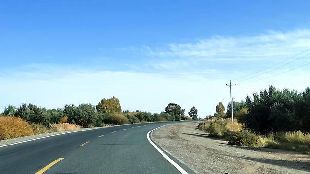 返回德令哈的路程我们选择不走高速,走了G215,道路两侧都是戈壁,道路笔直无尽头,易疲倦,马海村到鱼卡段才景色变换了,途中看到了骆驼群。马海村过后接近下午,乡村道路柏杨树色彩斑驳,映着远山和经纪,五颜六色层层叠叠。