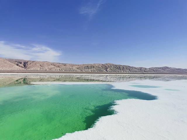 翡翠湖真的美到无法形容,建议带无人机和鞋套,我们为了美景,牺牲了鞋子,直接穿着鞋子步入盐湖,ps:友情提示,早上的盐湖更蓝,中午白色的盐地太过刺眼。建议直接抵达核心景区。该景点目前只收车费:20元\车。已经开始开发,后面估计是一个景点。