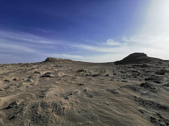 茫崖出来前往冷湖的路上,回走了昨晚的G315,路程中经过沙漠,我们没有规划去敦煌,这也算是这次路程中最美的沙漠了,忍不住停车观景。ps:停车一定要选好路肩和安全地带,途中就有停车观景的车辆陷入沙地。