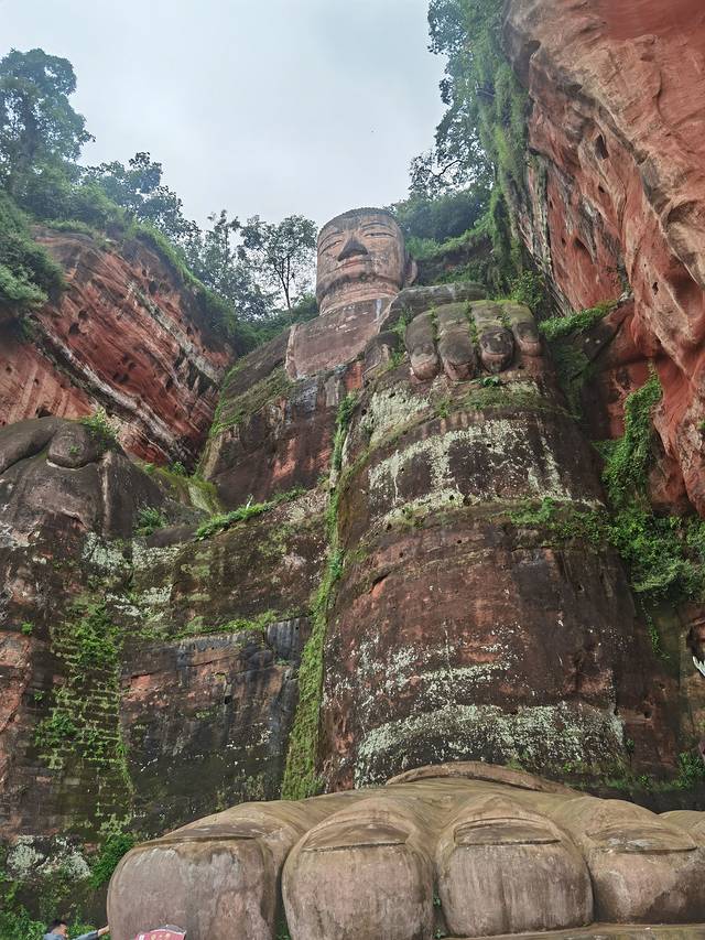 进园走不了多久就可以看到大佛像,在它头顶。然后下栈道到佛脚,人多要排队,栈道稍微有点险。到了佛脚就能感受到大佛的震撼了。