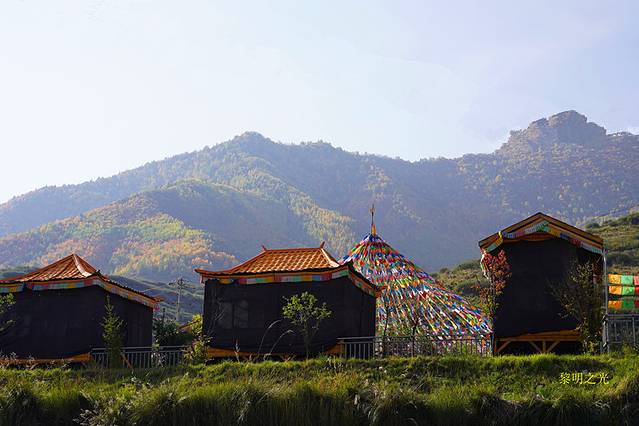 11:40我们离开观景台,沿着曲曲折折的草场公路,穿行在金黄色的草原中,十分的惬意,一边欣赏着蓝宝石一样的海子,一边观看着建筑风格迥异的藏寨,不一会,约半个多小时时辰,到达了甘加秘境景区的入口处,这里已经修建了售票厅、餐厅、陈列馆等建筑设施。好像尚未对外开放,景区全程免费。我们在这里拍了几张照片后,进入景区。