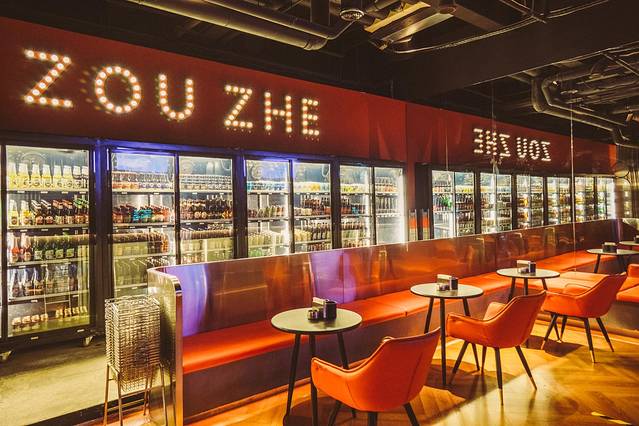 ZOUZHE走着酒吧位于水塔的旁边,在30米的大酒柜里摆着超市价格的各类进口啤酒,只有你想不到的,没有你喝不到的。整个酒吧空间感很棒,优雅不喧嚣,在靠窗户的桌子上还有小游戏机可以玩。还有一个红色的台球桌,不管拍照还是玩都是非常的合适。