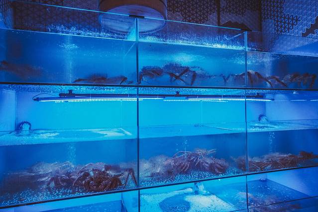 进门就能看到活蹦乱跳的蟹,可以自己挑选中意的蟹。整个环境布局非常的大气,很适合宴请朋友。