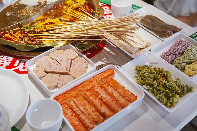 鸳鸯锅分为一半清汤一半牛油,而纯辣锅就是纯牛油锅底。红汤在锅内翻滚,热气腾腾的蒸汽夹杂着锅底里的香气扑鼻而来,味蕾已经开始蠢蠢欲动。