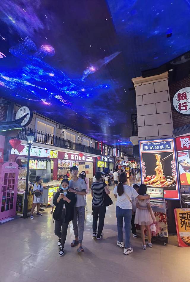 这条街的风格有点像老上海的街道,左右两边分别是琳琅满目的各地风味小吃和各种美食的店铺,也有日韩、欧美的特色餐饮,还有新潮服饰、VR游戏等时尚新宠,它吸引着人们纷纷前来打卡,很重要的一个因素,就是这条街上有4D幻境沉浸式体验。