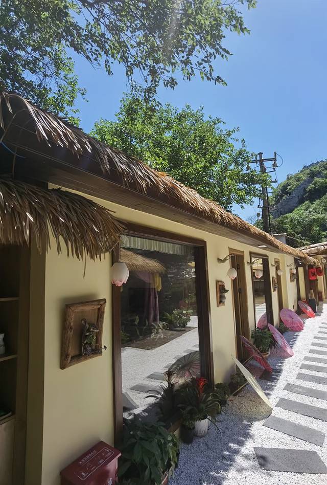 这个小院,就在百年古寺迎祥寺的旁边,从外部看上去并不显山露水,走进去,却别具一格。茅草屋+矮石墙+花纸伞+粉帷幔,使得整个小院刚柔并济,格外的文艺。小院呈长条形,中心的四面厅,是个小舞台,可以自弹自唱、自娱自乐,喝杯茶、唱首歌、下盘棋、聊个天,在这里做个短暂的停留小憩,真心不错的。种草!