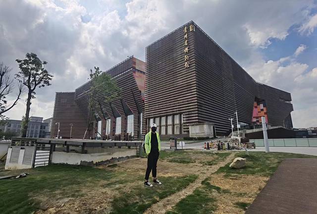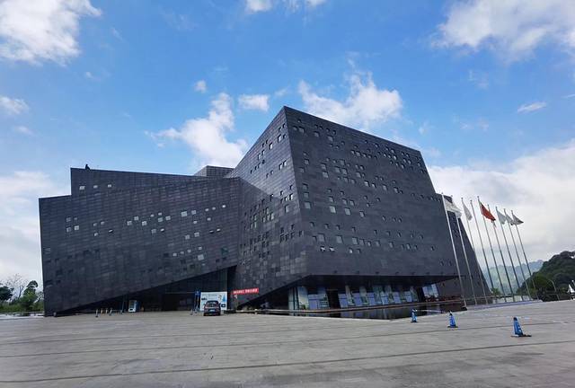 远看博物馆,犹如一块菱石,外观有着侗寨鼓楼轮廓的神韵,博物馆六个面的每一面形状都构成“山”字形,配上贵州传统的图案花纹,民族色彩,非常鲜明,菱石虽小,内蕴贵州文化千山千岛,或许就是它的寓意。