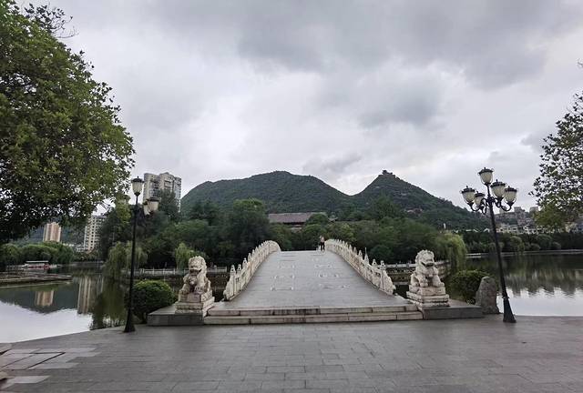 贵阳人说:甲秀楼,最好看的是晚上的灯光秀。问保安大哥几点亮灯,大哥说19:00,于是静静等待亮灯时刻。19:00到了,天还亮着,灯却没亮,周围的人都在嘀咕,这是咋啦?又等了十来分钟,灯还没亮。心里想,不会被忽悠了吧,等不及、不看了,于是走人。