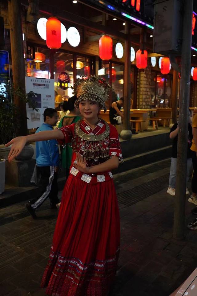 一到店门,苗妹子载歌载舞欢迎客人的到来,很有仪