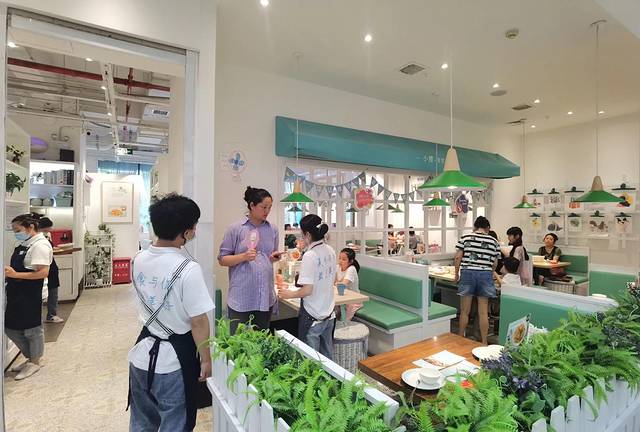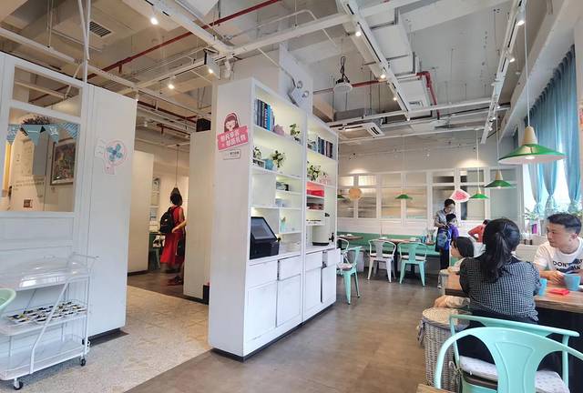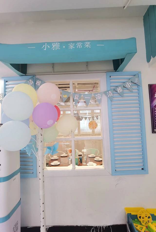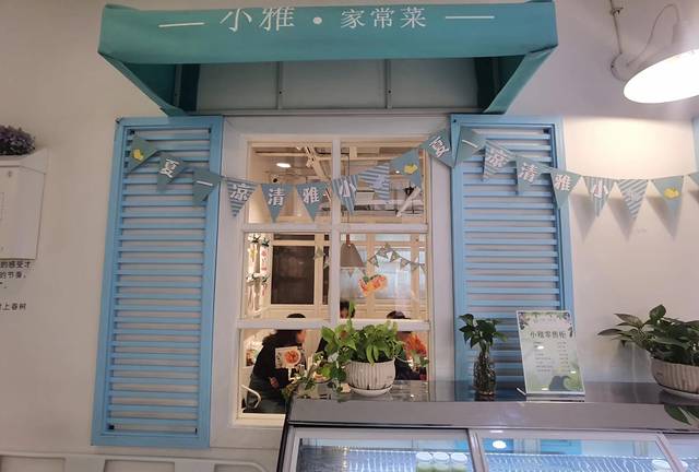 小雅以马卡龙蓝色+纯白色为主基调的设计,在周边的店铺中显得格外的抢眼,一个花盆、一扎气球、一摞书报、一排挂画,勾勒的氛围,是一种居家的感觉,就像它的名字一样显得清新优雅,在这里可以喝喝茶、看看书、望着窗外发发呆,会感觉很亲切、很自然、很放松。
