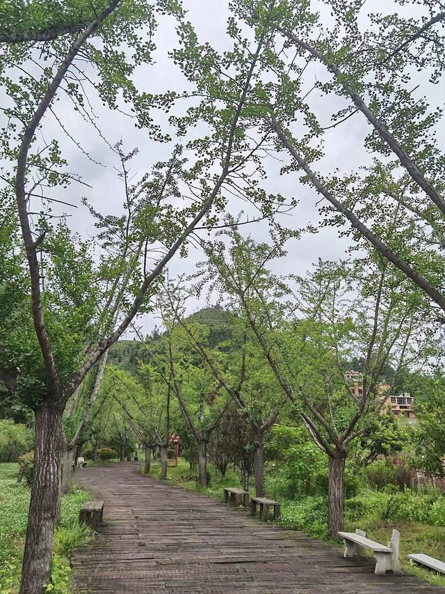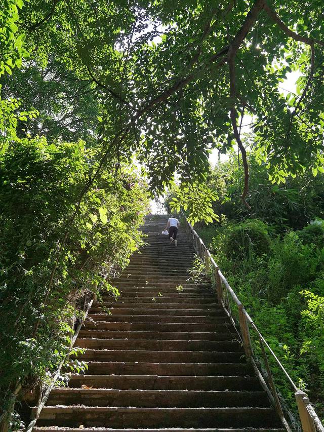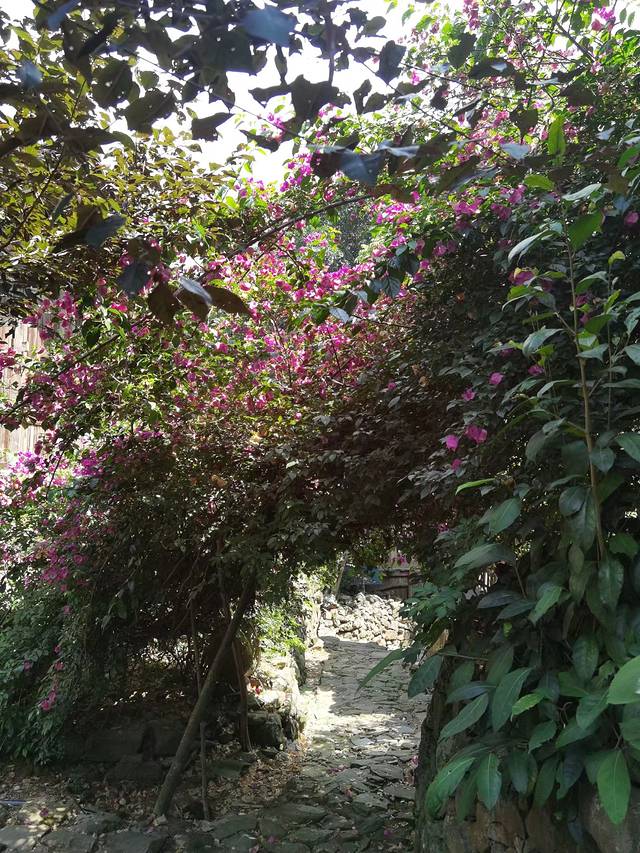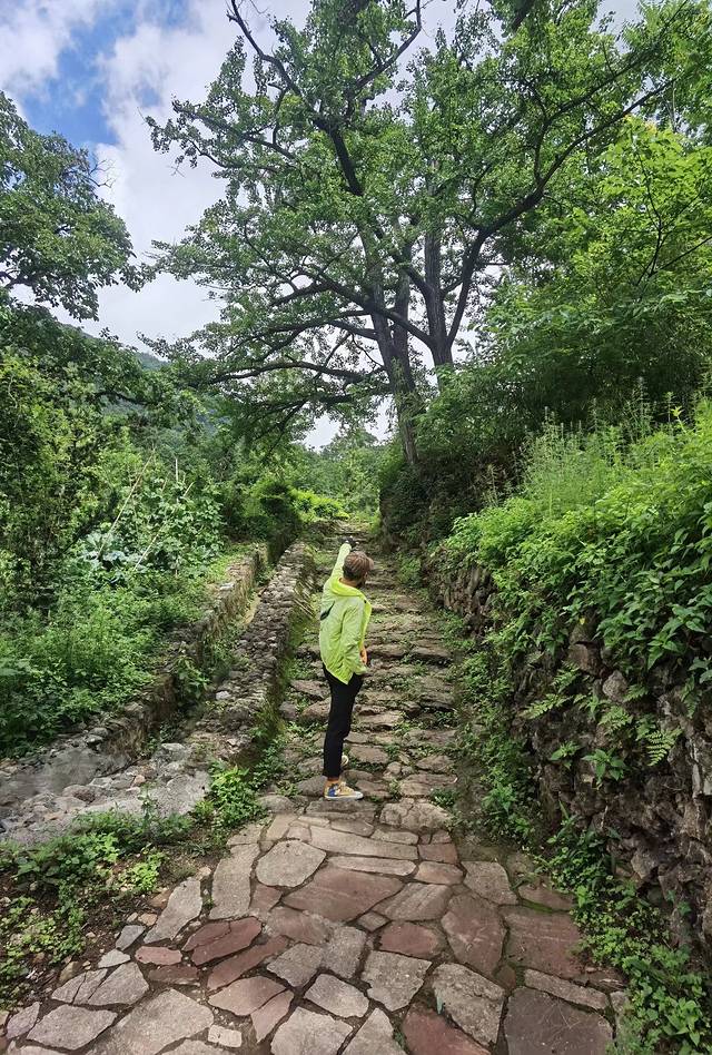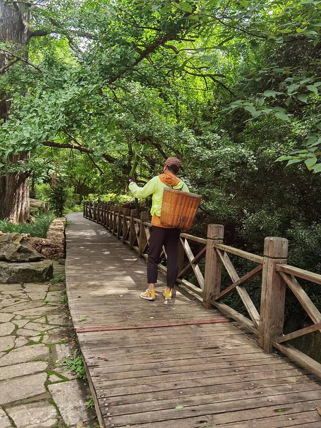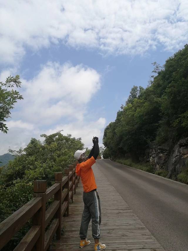 在栈道上遇到了一位反向徒步的大叔,他告诉我们,他就住在下面的村子里,从下面走上来,门票可以逃掉的。为了验证这位大叔的话,我们下山后沿着田间村落公路,进入村里,找到了那个可以上山的路口,这个路口有岗亭和保安值守,路口有横杆守住路口,跟保安假装问路,车子确定无疑是进不去的,人么!那边有很多小路,很轻松的就可以上山了。哈哈啊哈哈!
