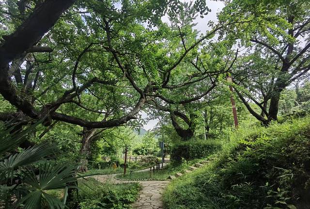 按照观光车的游览线路,全程徒步,其实不是很累的。因为半山腰的环山路,高低起伏不大,上上下下的坡度不高,且又是木板栈道,脚感很好,从环山路下山,就是一马平川的田间村落公路,如果有足够时间,强烈建议走一圈。我们因为时间限制,所以选择了在环山路半程徒步,在田间村落公路自驾的方式,进行了游览。