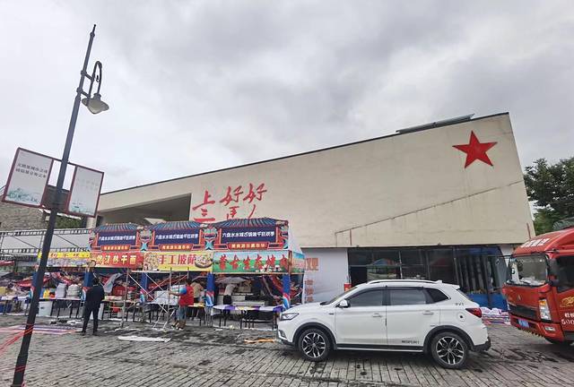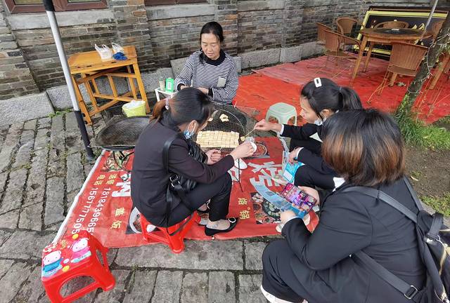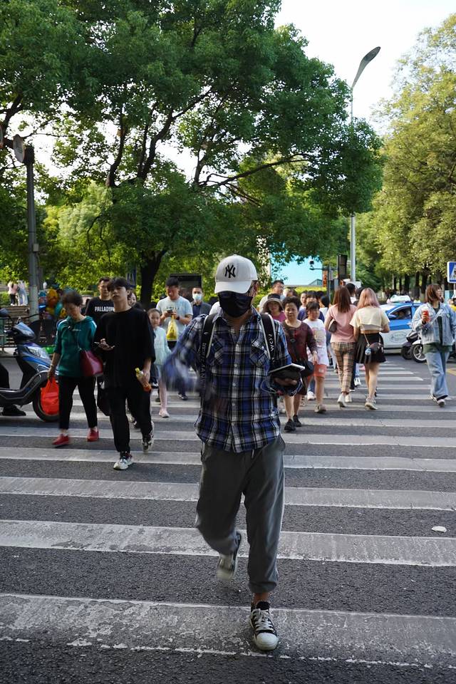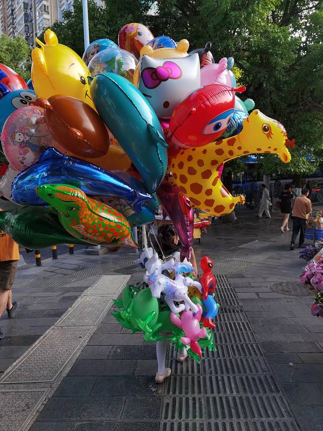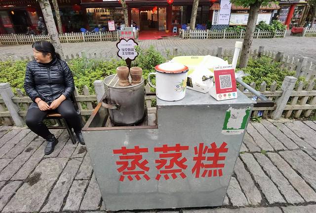 尽管不是很喜欢这种商业化很浓的大街,但我还是注意观察了,一直在找寻有生活气息的人和事的素材,功夫不负有心人,感觉还是有找到的:卖草鞋的婆婆、拣葱的大妈、撑着“白旗”的导游小姐姐、损坏要赔180一个的小猪猪、还有牵着柯基一起逛街的大叔……当然少不了还有捣辣酱的我。